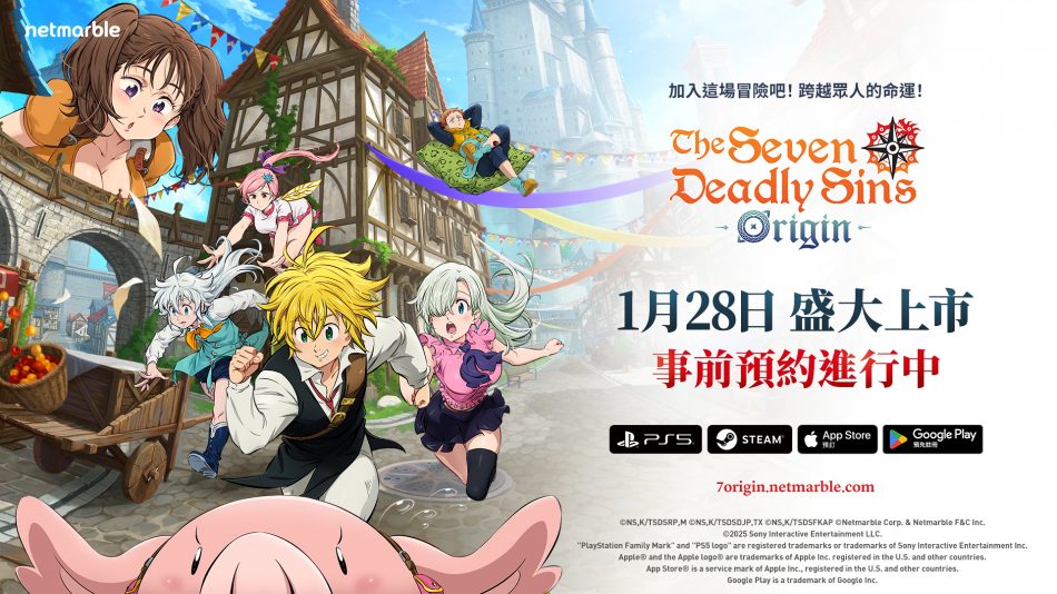 身為全球領先、高品質遊戲開發與發行公司的網石集團(Netmarble Corporation)已正式確認,旗下即將推出的開放世界動作 RPG《七大罪:Origin》將於 2026 年 1 月 28 日,於 PlayStation® 5、Steam (PC) 與行動裝置平台全球同步上市。此消息於索尼互動娛樂(Sony Interactive Entertainment)的State of Play發表會中公布,並同步首播了全新的實機遊玩宣傳影片。