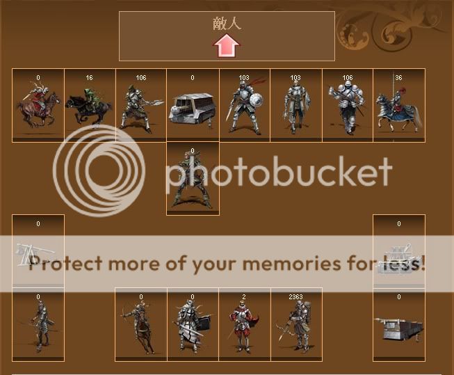 原帖由 暗黑邪神Jr 於 2009-7-5 07:18 PM 發表 如果這是防守陣 我只能給你十粒 如果這是攻擊陣 我只能說沒必要將弩車及長弓隔一格 位置分散不能把傷害降低