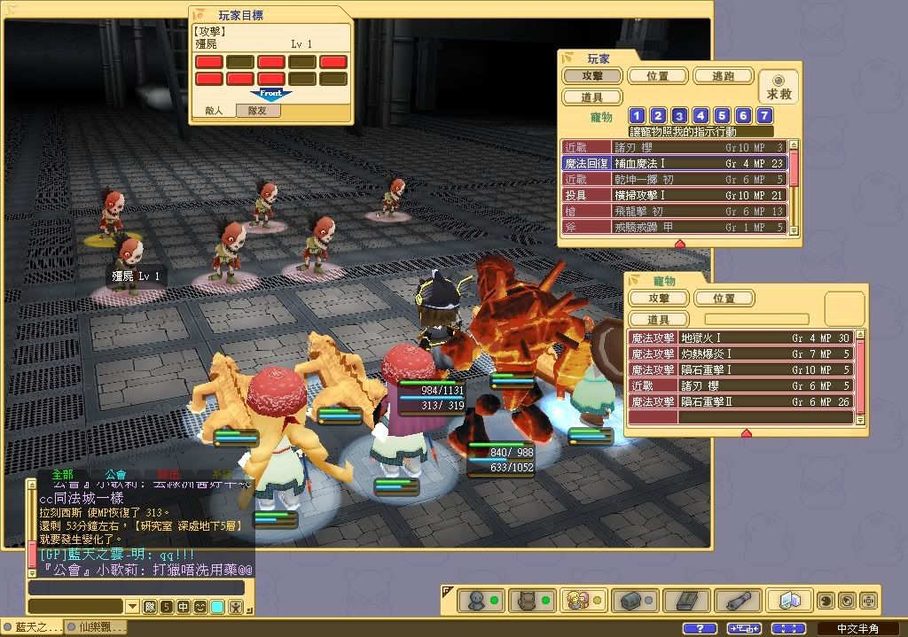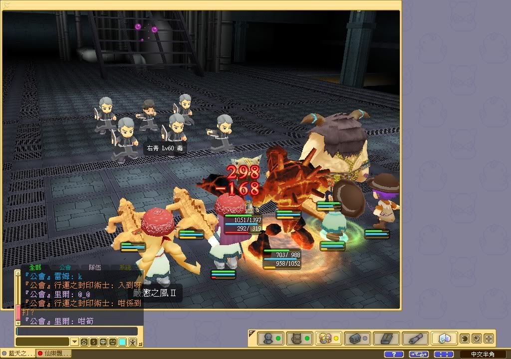 後排的黑衣人多用2級魔法, 傷害值約300