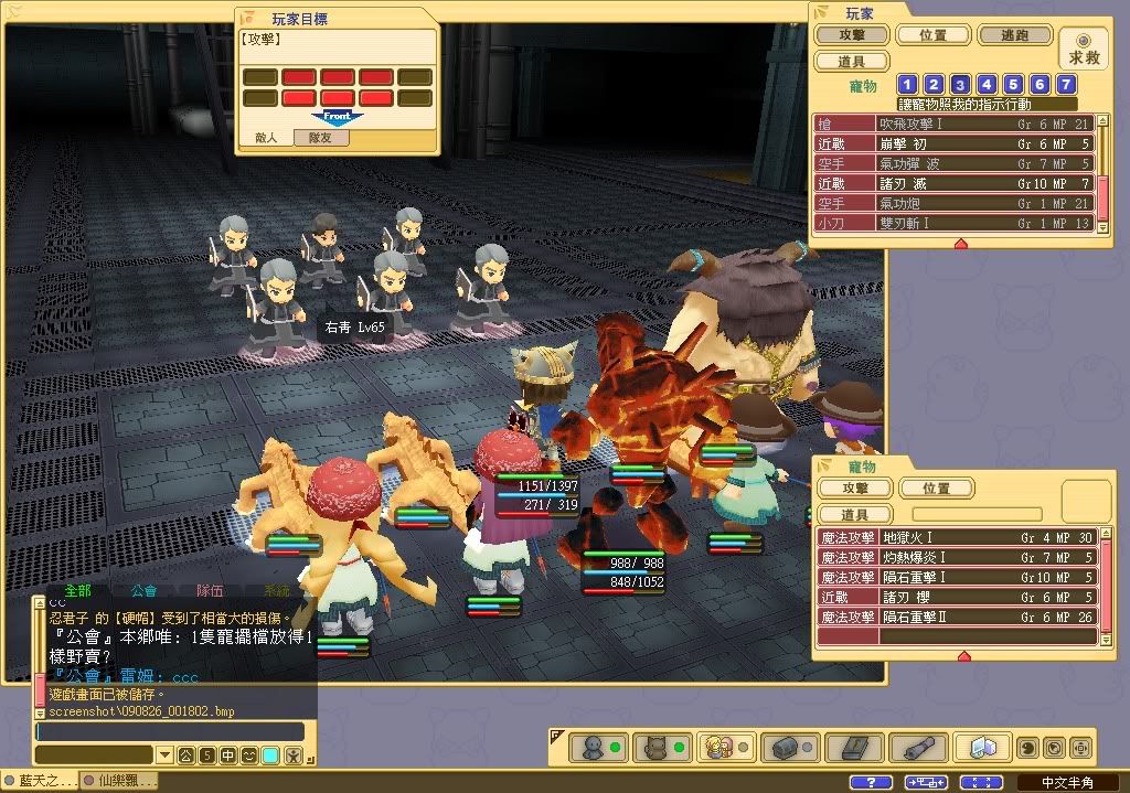 65,70LV的右青物攻很高, 因此, 第2第3場戰寵物的血量要保持在7成以上