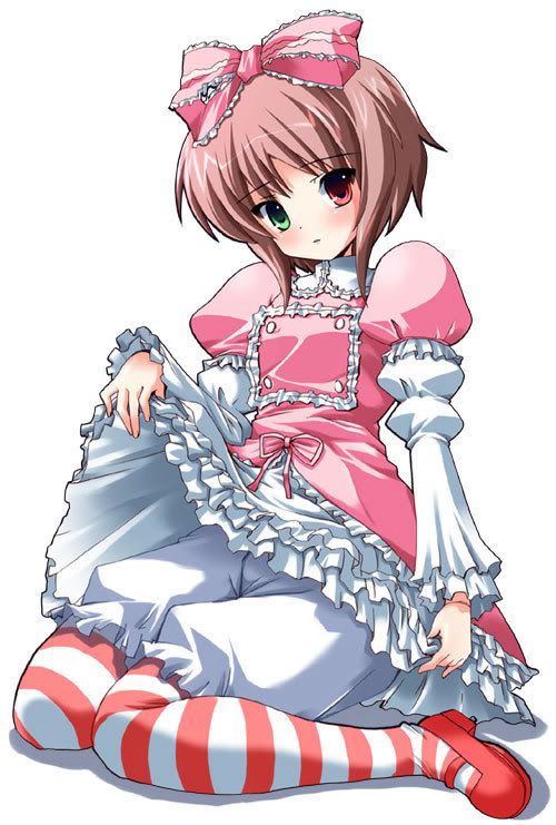 有黑蕾絲花邊, 亦有白色, 有穿襪子, 沒有襪子, 襪子只到緞帶頂端就沒有...等等=.=