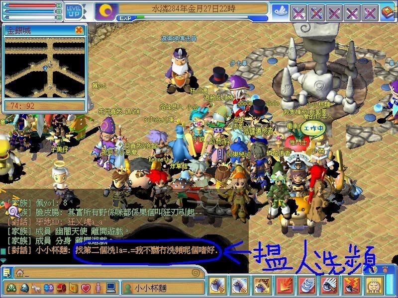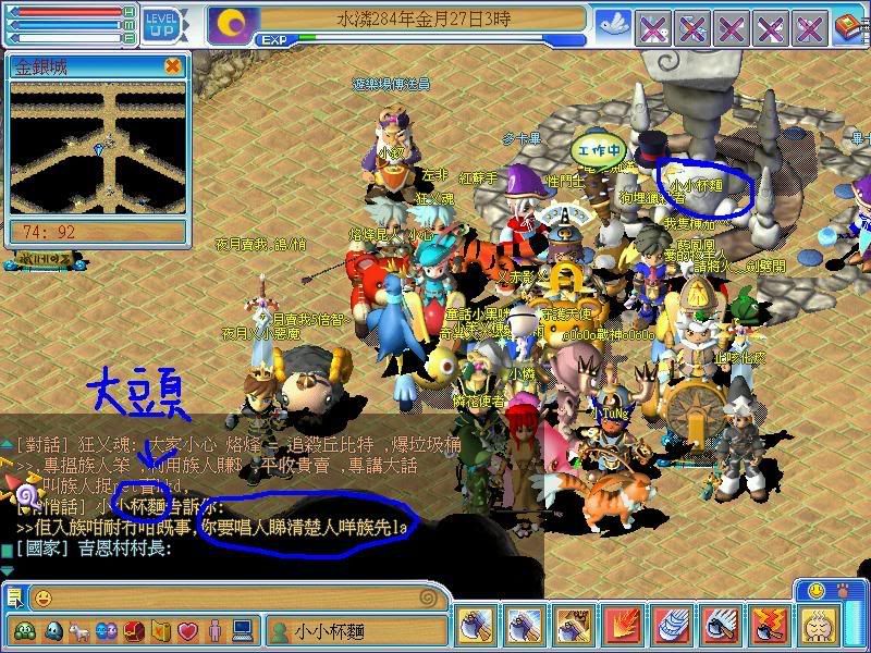 同埋 我地族有個族人狂比你地族人p,我大頭先行去see下, 我大頭一路招人 一路行去倉,佢打左句9lv族招人 ,佢都唔知你地瑪琳開番,見咁多人咪招下人,只係打左一句,之後冇招, 咁就等如撩人? 你地諗野過於偏激, 以為人地講咩都係撩你,害你, 你地都已經話小玥 : 『傻系天使係度想搶人走?』 ,之後你地都招人:exp no1 and no2 兼好野人第一家族招人 ,瑪琳招得 星願就唔比? 況且金倉出面係公用地,又冇話係屬於咩族擁有?