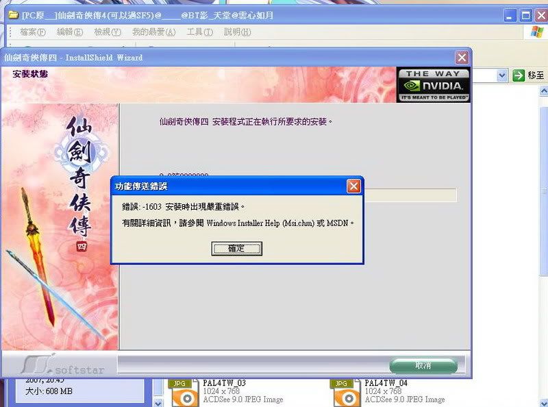 你試試將所有其他程式都關掉再安裝~包括msn,mp3~