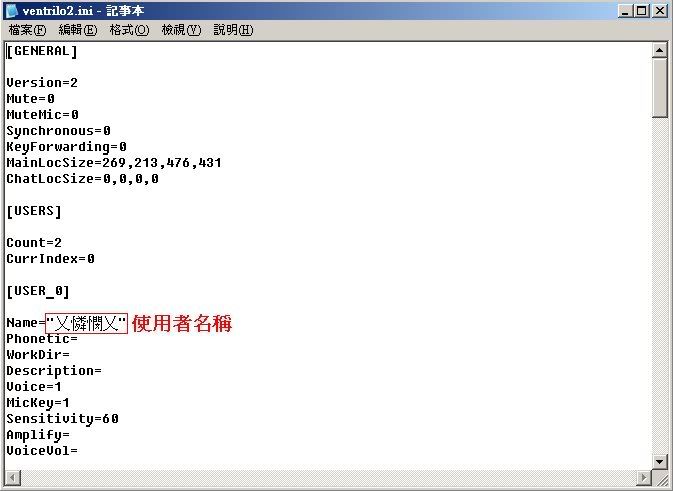 2. 在Ventilo的fold裡可以找一個檔案叫ventrilo2.ini或者是ventrilo2