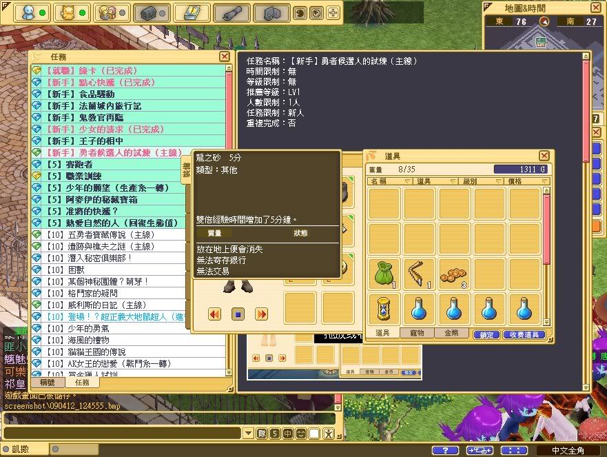 龍之砂1小時 x 30 (雙倍經驗值時間增加1小時) = 50x30 = 1500G