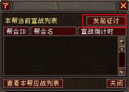 宣戰幫幫主或副幫主在打開以上介面後,再選擇“發起征討”,輸入宣戰物件幫ID,即可發動一次宣戰。