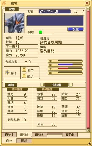[分享] 分享下我隻錫汀特利奧~ =] 能力更新左~ [複製鏈接] |