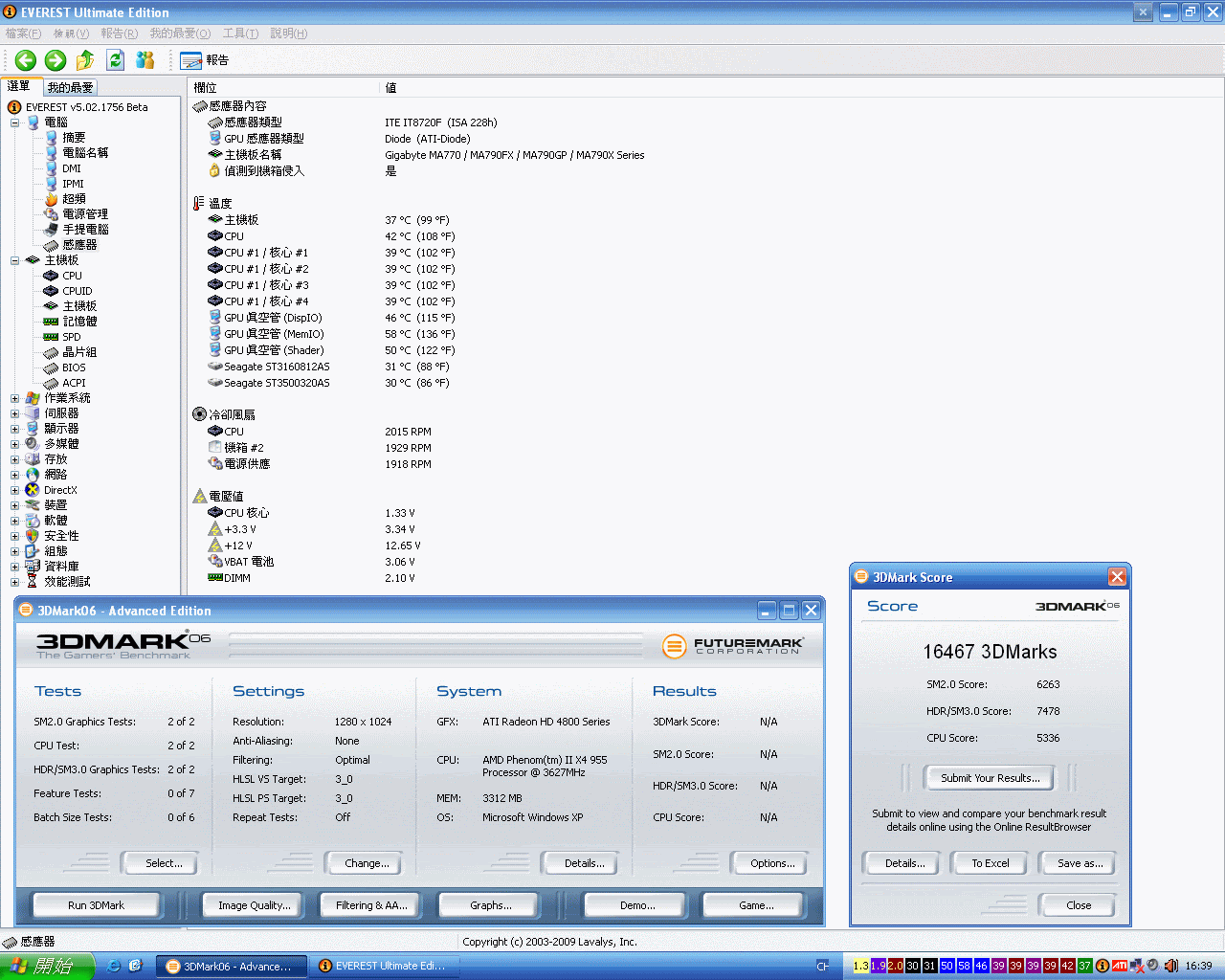 室溫約26度, CPU少超至3.4Ghz時閒置都係廿幾度, 3Dmark06達萬三分水平, 而且溫度亦都冇大幅度提升!