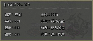 土地:城池建設的基礎,土地的多少決定了城池中最多可以容納封地的數量。