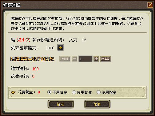 兌換銅錢:本城封地的銅錢產量越高,同樣價錢兌換的銅錢就越多