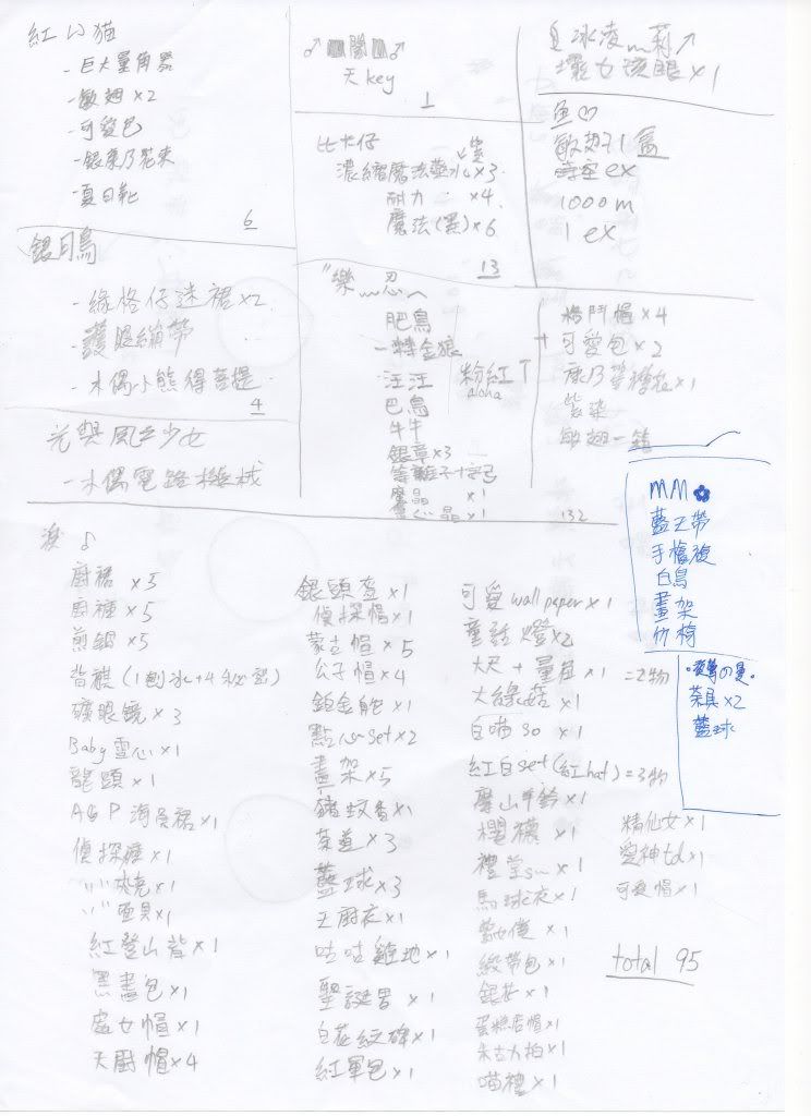 物品LIST如下 (數字不同大家抽到的