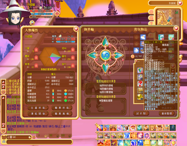 好啦 首先我比大家睇下 全靈80法師 全金裝既能力值先..