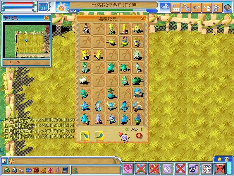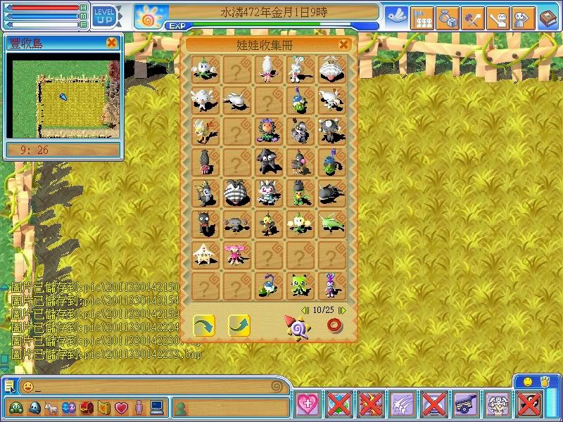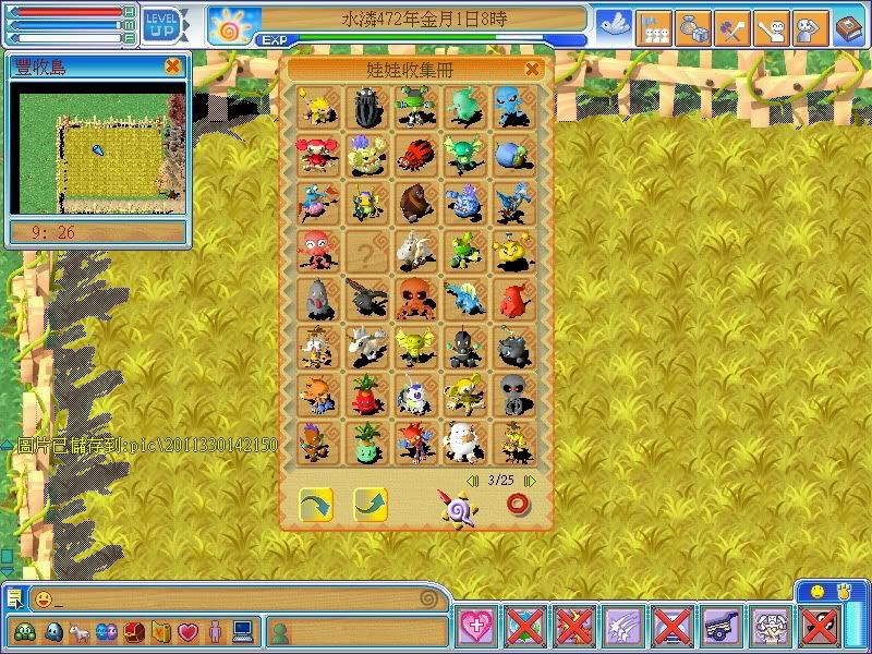 主程式->水火光系精靈,木系雷爵獸,海光星,木土火系海馬,飛木馬,金系章魚,火系鯨魚,土鳳凰,火闇系燈籠