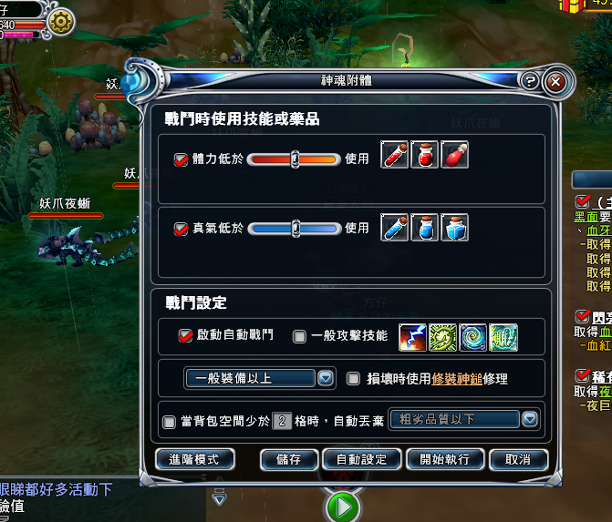 內掛界面...有自動食水,自動打怪,自動拋野..放技等等