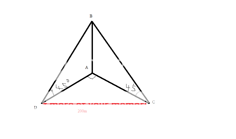 1.The elevation of the top of a tower is 45degree from each of two points on the ground 200m apart,