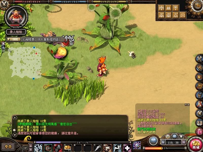 打象人寶寶(80級的怪) 傷害1900~ 4700 (miss率5成)