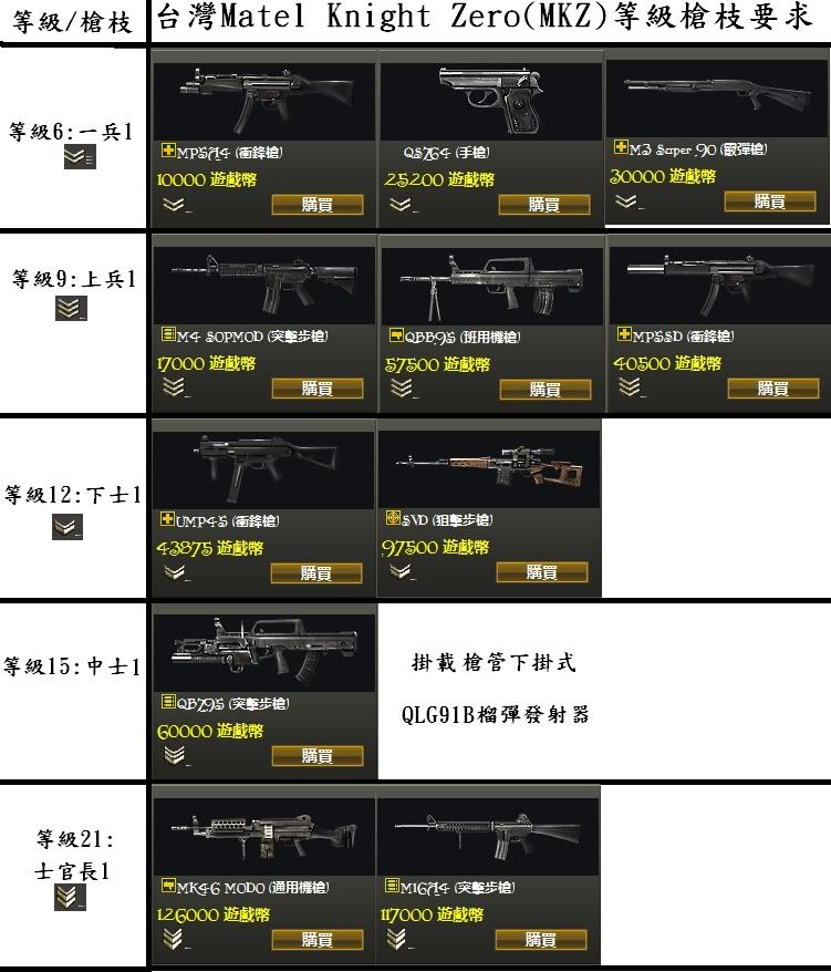 Q17:台版/陸版槍枝的等級要求最高的幾多?