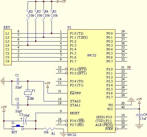 if ((P1&0xf0)!=0xf0) // 本行有鍵按下