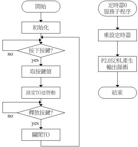 TR1 = 0; // 若按鍵鬆開,則停止計數,不產生脈波輸出