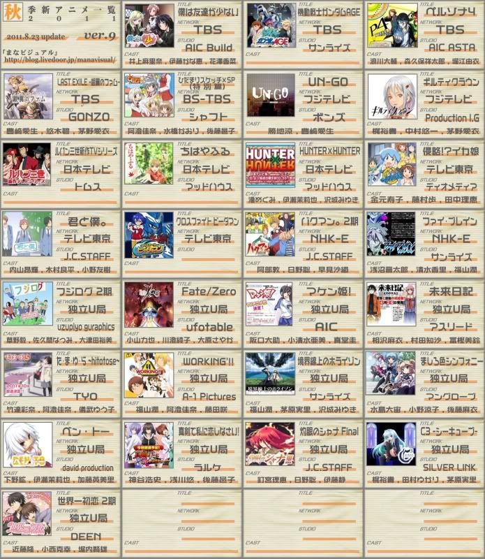 2011年秋季10月新番圖表