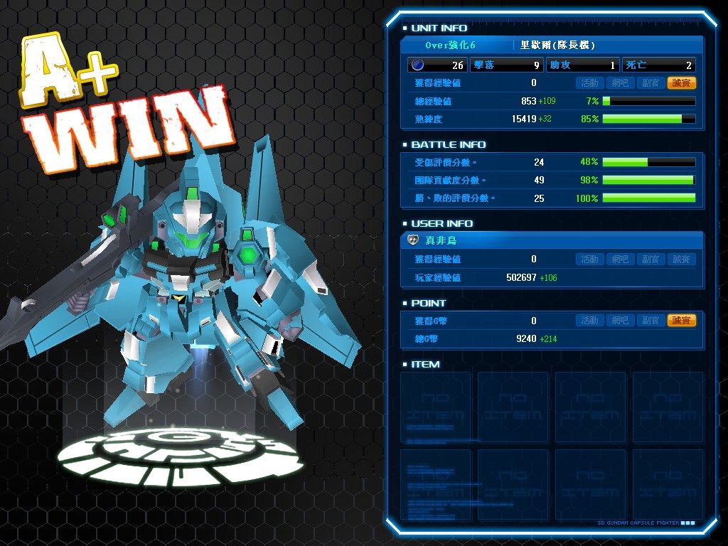 冇法啦...第五場小弟就即轉Z覺醒,小刀xp就轉獨角獸NT-D,一開波小弟又係領先,點知中咗小刀一下SP死咗一命,分數一樣但係小刀xp得番好少血,小弟就追殺佢,點知小刀xp嫌瞬移多又用過,結果俾佢走倒DRAW咗= =....唔係小弟會win嫁 ! ! ! 最後一場挽格鬥擂台,小刀xp轉麥克滑版 ( 囧,小刀xp愛有型 ? ) ,小弟就轉劍瘟 ( 其實小弟轉錯機sad ) ,轉咗就算啦...點知小刀xp挽浮空,仲耍光槍,小弟PS裝甲有限,小刀xp落到地即時一野飛踢,結果小弟就慘敗T^T...講真T^T...小弟之前曾經係神手黎T^T...總會有一日小弟會報仇嫁 ! ! ! 小刀xp你等我呀 !