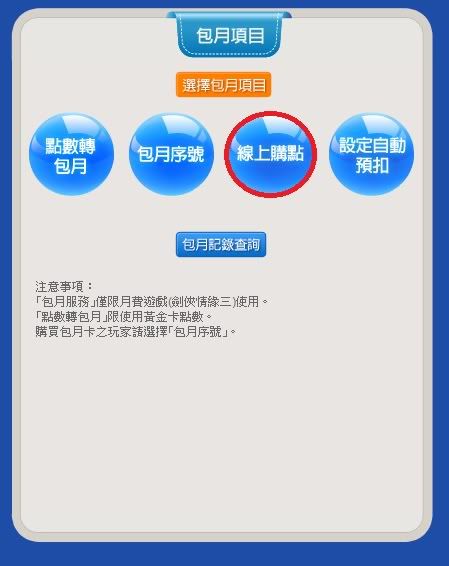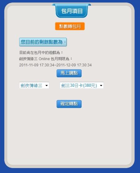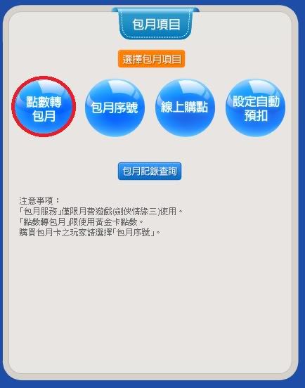 8)回到包月,選擇點數轉包月