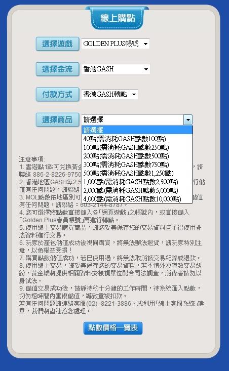 4)按照以下填入資料,商品處請選擇你所輸入的點數