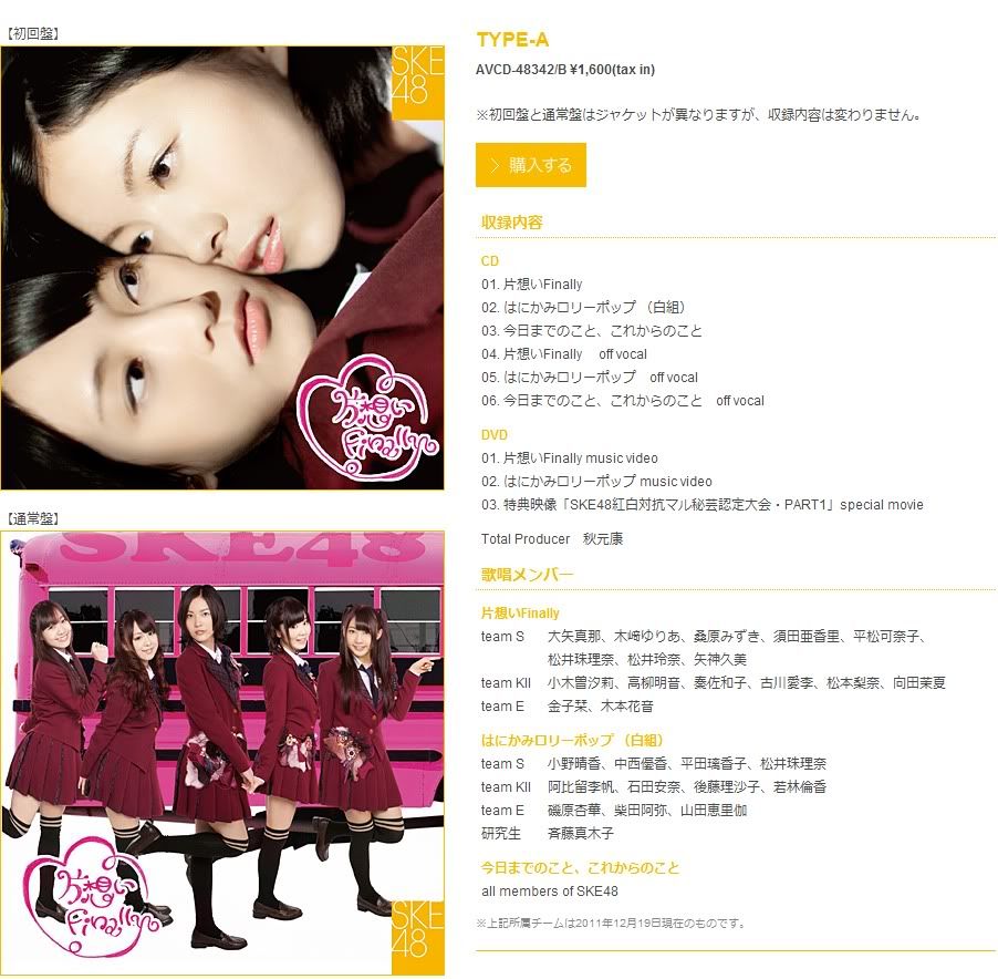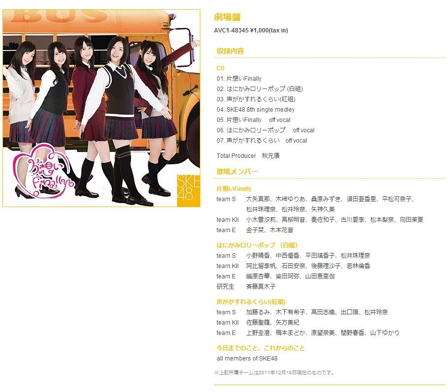 2000FUN論壇 綜合論壇 AKB48 專區 AKB48 交易區 [香港/內地/其他] SKE48 8th Single "片想いFinally" [ ...