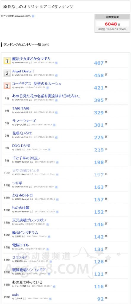 [分享] [小丸子] 信不信由你!日本原創動畫人氣排名出爐 [複製鏈接] |