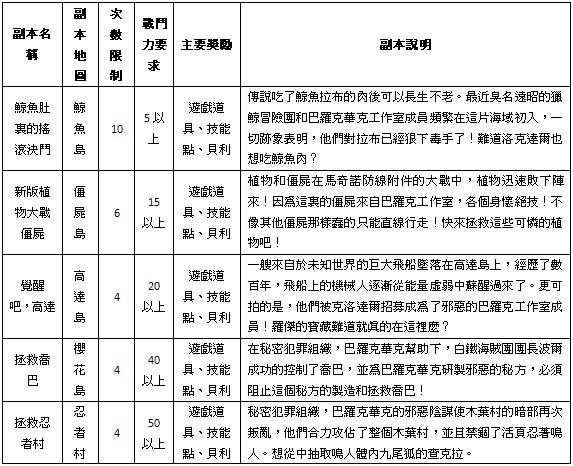 更多副本等待後續版本更新添加。
