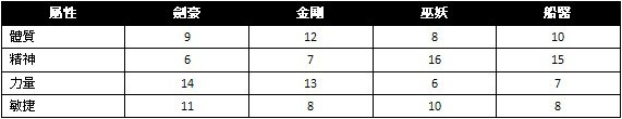 遊戲有4個職業,分別為:劍豪、巫妖、金剛和船醫,不同的職業初始基本屬性不同,而且對戰鬥屬性的成長也不同