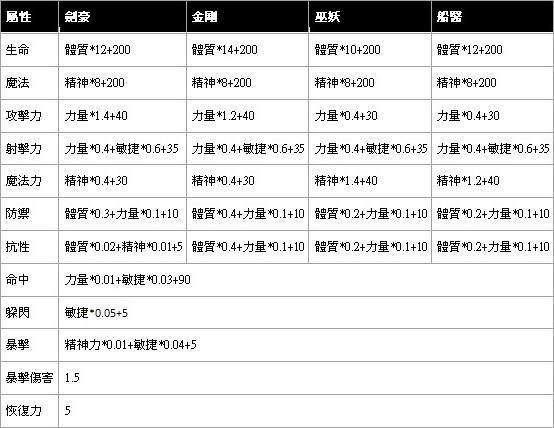 初始基礎屬性: