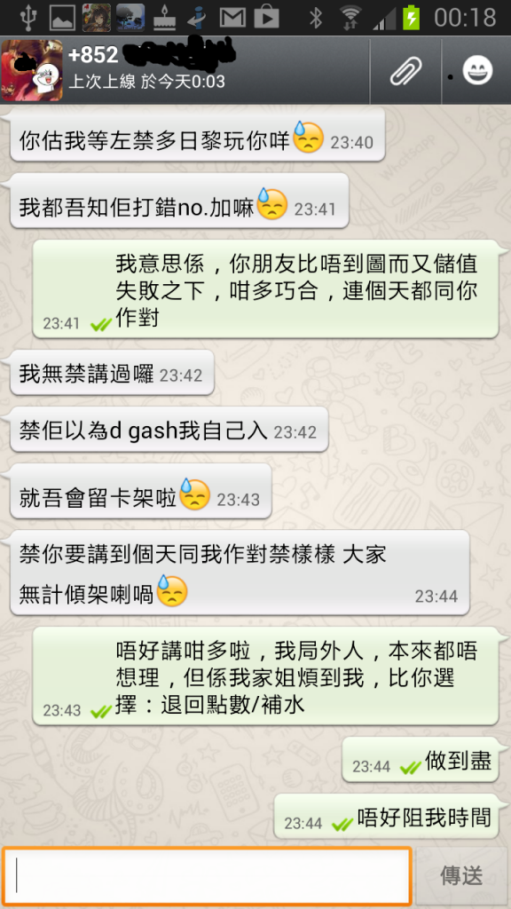 之後佢加張佢朋友比佢的1200點點數卡我入,當然失敗了,我問佢有冇圖,