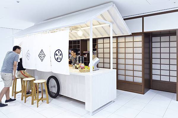 有關東煮攤販也有日本壽司吧,還有互動式的錦鯉魚池,
